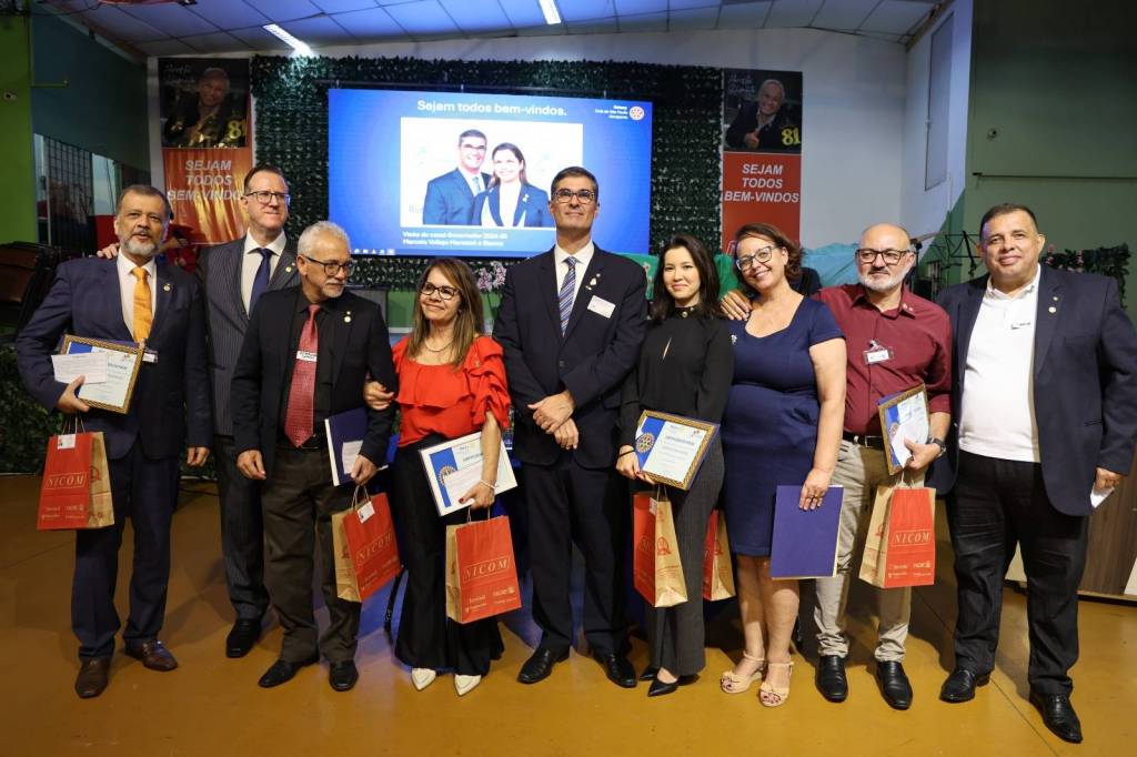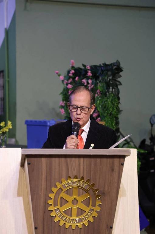 O governador Marcelo Vallejo Marsaioli concluiu a noite com um pronunciamento inspirador, elogiando os projetos do clube e reforçando a mensagem de que o Rotary é um lugar de alegria e união, onde todos devem trabalhar para manter esse espírito.