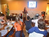 Foram apresentadas fotos dos interactianos em atividade e participando de uma reunião do clube que acontece uma vez por mês, onde são discutidos os projetos que serão realizados, ideias e opiniões do grupo.