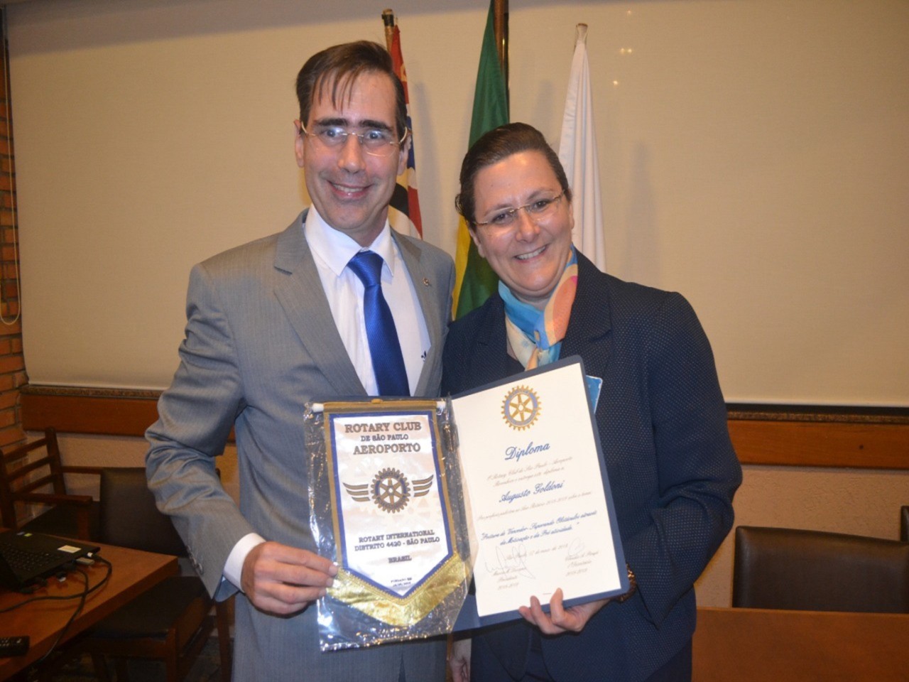 Mais uma noite de palestra no RCSP Aeroporto. Com brilhante apresentação, o Companheiro do E-Clube 4420 Augusto Goldoni ministrou a palestra Postura de Vencedor - Superando obstáculos através da motivação e da pró-atividade. Na reunião, o clube e a empresa Nicom, representada pelo Companheiro Hiroshi Shimuta foram agraciados com diplomas, pela participação no Rotary Day.